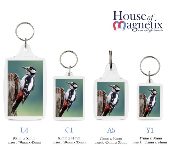 - L4 Keyring: 96mm x 55mm (insert size - 70mm x 45mm)