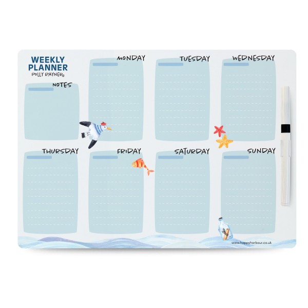 Our handy magnetic weekly planners. Gloss laminated dry wipe surface and supplied with black marker pens and clips.
